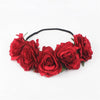 Une couronne d'incroyables et généreuses roses rouges en tissu. Cet accessoire de tête sera idéal pour vos fêtes, vos festivals ou pour les mariages.